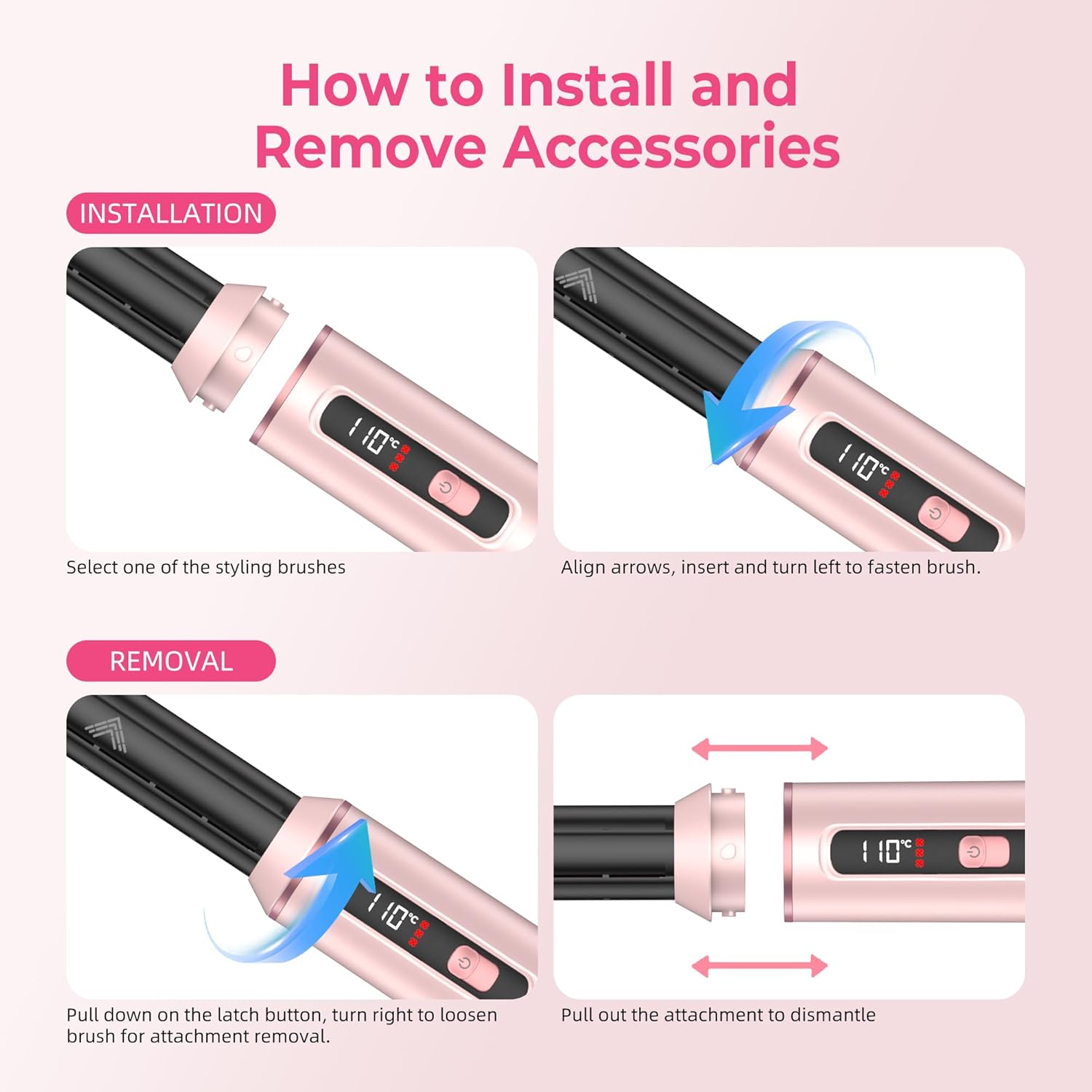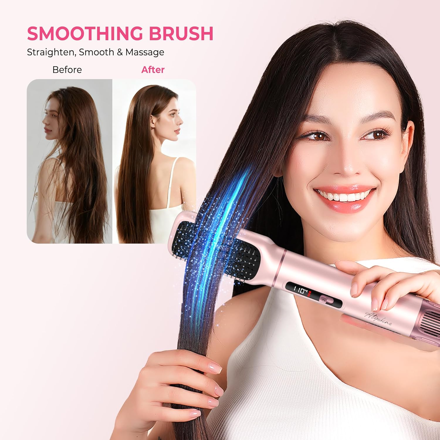 Product Dimensions : 10.3 x 8.8 x 3.1 inches; 2.05 Pounds Date First Available : November 4, 2025 Manufacturer : Atopskins ASIN : B0FZGKRRXP Best Sellers Rank: #24,963 in Beauty & Personal Care (See Top 100 in Beauty & Personal Care) #55 in Hot-Air Hair Brushes Customer Reviews: 5.0 5.0 out of 5 stars (29) var dpAcrHasRegisteredArcLinkClickAction; P.when(‘A’, ‘ready’).execute(function(A) { if (dpAcrHasRegisteredArcLinkClickAction !== true) { dpAcrHasRegisteredArcLinkClickAction = true; A.declarative( ‘acrLink-click-metrics’, ‘click’, { “allowLinkDefault”: true }, function (event) { if (window.ue) { ue.count(“acrLinkClickCount”, (ue.count(“acrLinkClickCount”) || 0) + 1); } } ); } }); P.when(‘A’, ‘cf’).execute(function(A) { A.declarative(‘acrStarsLink-click-metrics’, ‘click’, { “allowLinkDefault” : true }, function(event){ if(window.ue) { ue.count(“acrStarsLinkWithPopoverClickCount”, (ue.count(“acrStarsLinkWithPopoverClickCount”) || 0) + 1); } }); }); 5 TOOLS IN 1: YOUR COMPLETE STYLING KIT. Your entire styling routine, simplified. This all-in-one system replaces multiple tools. The main styler seamlessly pairs with four specialized snap-on attachments (shown): a volumizing brush for roots, a smoothing paddle for straightening, an auto-wrap barrel for curls, and a concentrator for precise drying. Effortlessly switch from wet hair to finished, salon-worthy styles—sleek, curly, or voluminous—in minutes, saving you time and drawer space LCD SCREEN & 3 PRECISE HEAT SETTINGS. Style with confidence and control. The built-in LCD screen (as pictured) clearly displays your exact temperature setting. Choose from 3 gentle yet effective heat levels (50°C, 80°C, 110°C) tailored for fine, normal, or thick hair. This smart system helps minimize heat exposure and protect your hair’s natural shine while ensuring efficient styling and long-lasting results. EASY ONE-BUTTON OPERATION. Designed for effortless styling. Power on and select your ideal temperature with a single, intuitive slide switch. The straightforward controls make achieving perfect styles simple for everyone, from beginners to pros. Focus on creating your look without navigating complicated settings 1000W MOTOR & CERTIFIED SAFE. Experience powerful, quiet, and safe performance. The efficient 1000W motor provides fast drying and effective styling. This styler is CE certified, meeting high safety standards for your peace of mind during every use SLEEK, STYLISH DESIGN. Elevate your vanity with a tool that looks as good as it performs. Featuring a modern pink, black, and rose gold color scheme (as seen in the image), this styler is a stylish addition to your space. Its thoughtful design combines visual appeal with a comfortable, ergonomic grip for a delightful styling experience