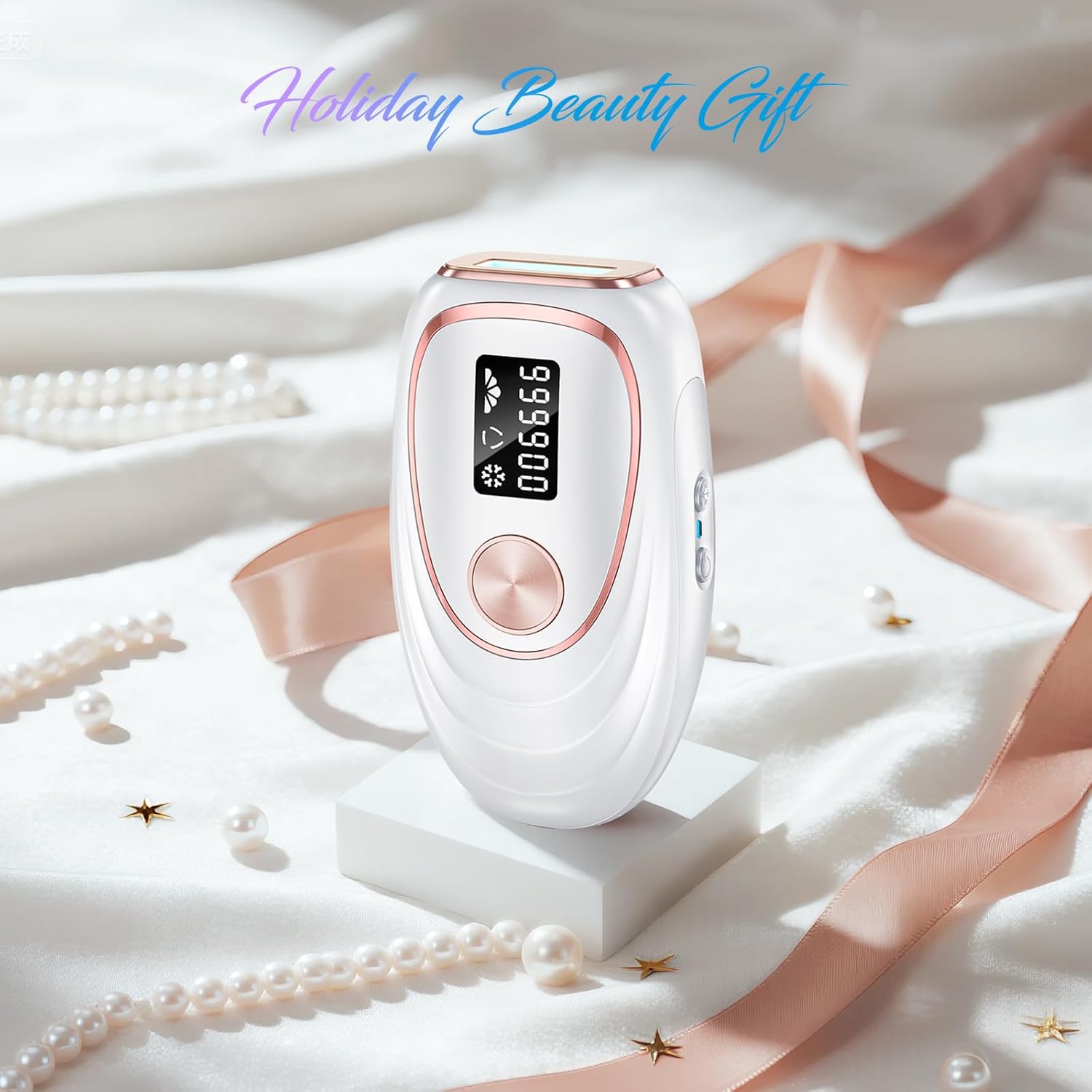 IPL Laser Hair Removal Device for Women & Men – Home 45°F Ice-Cooling Contact for Painless & Long-Lasting Results, 86% Hair Reduction in 3 Weeks for Full Body & Bikini Line, Off White