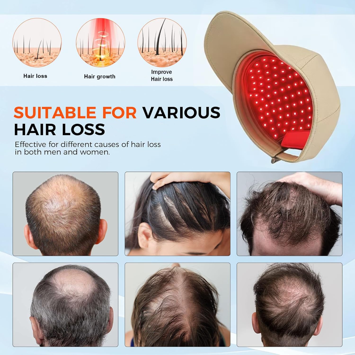 Red Light Hair Growth Cap – Hair Growth Cap for Men Women – Lasers & LED Light Therapy Cap – FDA Cleared Rechargeable Hair Loss Treatment Device for Fast Thickening – Ideal for Home Use -Beige